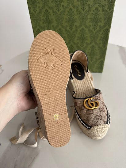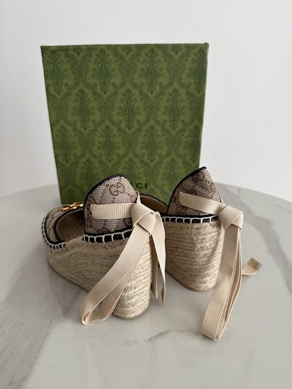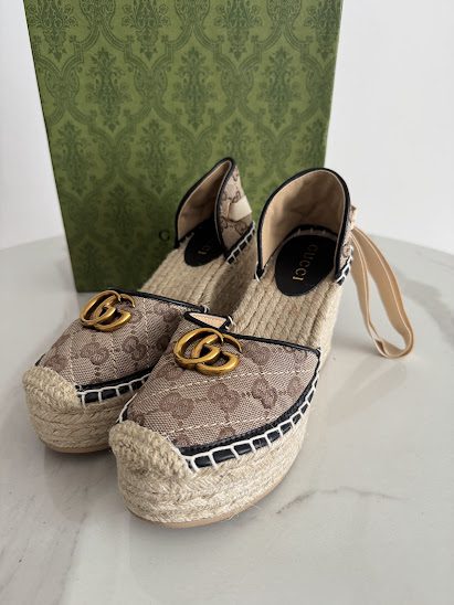 GG Sandalias Monogram con plataforma de yute y lazos