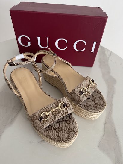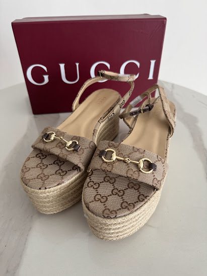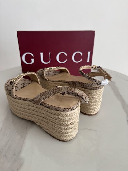 GG Sandalias Monogram Plataforma de yute