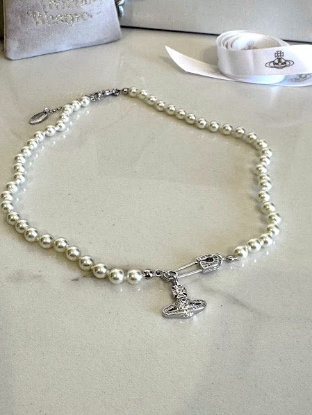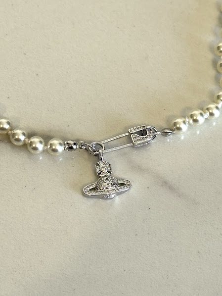 VW Collar de perlas dije plateado chico
